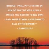 Behold, I will put a spirit in him so that he will hear a rumor and return to his own land, where I will cause him to fall by the sword.'"