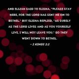 and Elijah said to Elisha, "Please stay here, for the LORD has sent me on to Bethel." But Elisha replied, "As surely as the LORD lives and as you yourself live, I will not leave you." So they went down to Bethel.