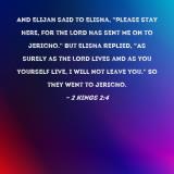 And Elijah said to Elisha, "Please stay here, for the LORD has sent me on to Jericho." But Elisha replied, "As surely as the LORD lives and as you yourself live, I will not leave you." So they went to Jericho.