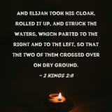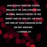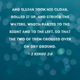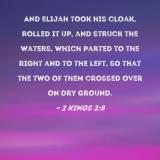 And Elijah took his cloak, rolled it up, and struck the waters, which parted to the right and to the left, so that the two of them crossed over on dry ground.