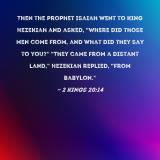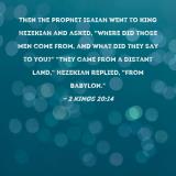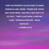 Then the prophet Isaiah went to King Hezekiah and asked, "Where did those men come from, and what did they say to you?" "They came from a distant land," Hezekiah replied, "from Babylon."