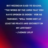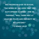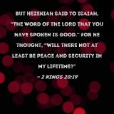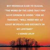 But Hezekiah said to Isaiah, "The word of the LORD that you have spoken is good." For he thought, "Will there not at least be peace and security in my lifetime?"