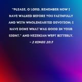 "Please, O LORD, remember how I have walked before You faithfully and with wholehearted devotion; I have done what was good in Your sight." And Hezekiah wept bitterly.