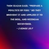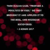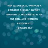 Then Isaiah said, "Prepare a poultice of figs." So they brought it and applied it to the boil, and Hezekiah recovered.