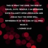 this is what the LORD, the God of Israel, says: 'Behold, I am bringing such calamity upon Jerusalem and Judah that the news will reverberate in the ears of all who hear it.
