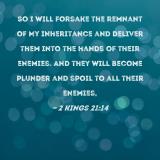 So I will forsake the remnant of My inheritance and deliver them into the hands of their enemies. And they will become plunder and spoil to all their enemies,