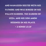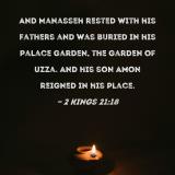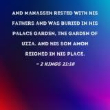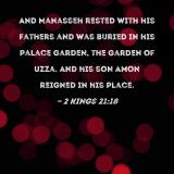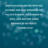 And Manasseh rested with his fathers and was buried in his palace garden, the garden of Uzza. And his son Amon reigned in his place.