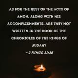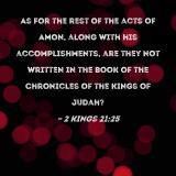 As for the rest of the acts of Amon, along with his accomplishments, are they not written in the Book of the Chronicles of the Kings of Judah?