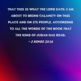 that this is what the LORD says: I am about to bring calamity on this place and on its people, according to all the words of the book that the king of Judah has read,