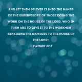 And let them deliver it into the hands of the supervisors of those doing the work on the house of the LORD, who in turn are to give it to the workmen repairing the damages to the house of the LORD--
