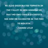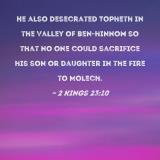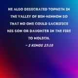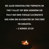 He also desecrated Topheth in the Valley of Ben-hinnom so that no one could sacrifice his son or daughter in the fire to Molech.