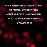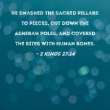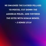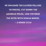 He smashed the sacred pillars to pieces, cut down the Asherah poles, and covered the sites with human bones.