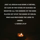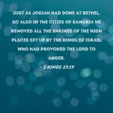 Just as Josiah had done at Bethel, so also in the cities of Samaria he removed all the shrines of the high places set up by the kings of Israel who had provoked the LORD to anger.