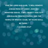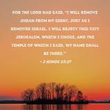 For the LORD had said, "I will remove Judah from My sight, just as I removed Israel. I will reject this city Jerusalem, which I chose, and the temple of which I said, 'My Name shall be there.'"