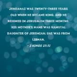 Jehoahaz was twenty-three years old when he became king, and he reigned in Jerusalem three months. His mother's name was Hamutal daughter of Jeremiah; she was from Libnah.