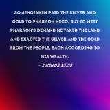 So Jehoiakim paid the silver and gold to Pharaoh Neco, but to meet Pharaoh's demand he taxed the land and exacted the silver and the gold from the people, each according to his wealth.