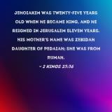Jehoiakim was twenty-five years old when he became king, and he reigned in Jerusalem eleven years. His mother's name was Zebidah daughter of Pedaiah; she was from Rumah.