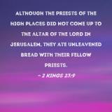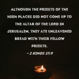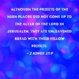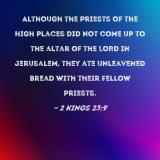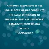 Although the priests of the high places did not come up to the altar of the LORD in Jerusalem, they ate unleavened bread with their fellow priests.