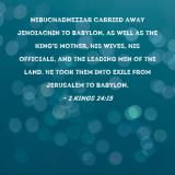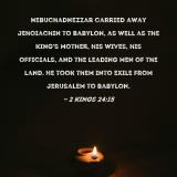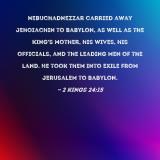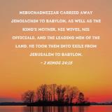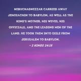 Nebuchadnezzar carried away Jehoiachin to Babylon, as well as the king's mother, his wives, his officials, and the leading men of the land. He took them into exile from Jerusalem to Babylon.