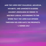 And the LORD sent Chaldean, Aramean, Moabite, and Ammonite raiders against Jehoiakim in order to destroy Judah, according to the word that the LORD had spoken through His servants the prophets.