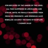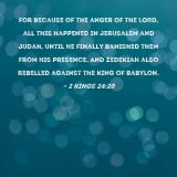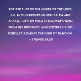 For because of the anger of the LORD, all this happened in Jerusalem and Judah, until He finally banished them from His presence. And Zedekiah also rebelled against the king of Babylon.