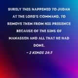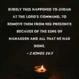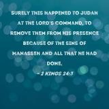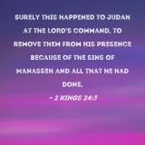 Surely this happened to Judah at the LORD's command, to remove them from His presence because of the sins of Manasseh and all that he had done,
