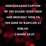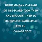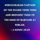 Nebuzaradan captain of the guard took them and brought them to the king of Babylon at Riblah.