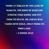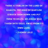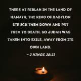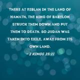 There at Riblah in the land of Hamath, the king of Babylon struck them down and put them to death. So Judah was taken into exile, away from its own land.