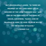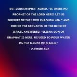 Pictures and Artwork But Jehoshaphat asked, "Is there no prophet of the LORD here? Let us inquire of the LORD through him." And one of the servants of the king of Israel answered, "Elisha son of Shaphat is here. He used to pour water on the hands of Elijah." |