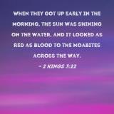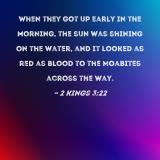 When they got up early in the morning, the sun was shining on the water, and it looked as red as blood to the Moabites across the way.