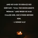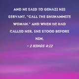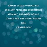 And he said to Gehazi his servant, "Call the Shunammite woman." And when he had called her, she stood before him,