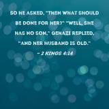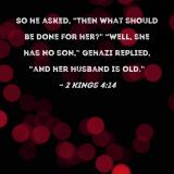 So he asked, "Then what should be done for her?" "Well, she has no son," Gehazi replied, "and her husband is old."