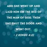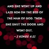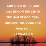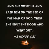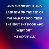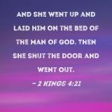 And she went up and laid him on the bed of the man of God. Then she shut the door and went out.