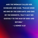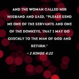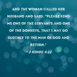 And the woman called her husband and said, "Please send me one of the servants and one of the donkeys, that I may go quickly to the man of God and return."