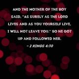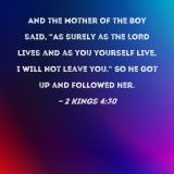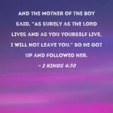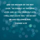 And the mother of the boy said, "As surely as the LORD lives and as you yourself live, I will not leave you." So he got up and followed her.