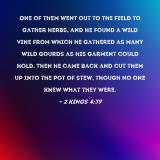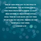 Pictures and Artwork One of them went out to the field to gather herbs, and he found a wild vine from which he gathered as many wild gourds as his garment could hold. Then he came back and cut them up into the pot of stew, though no one knew what they were. |