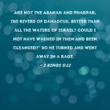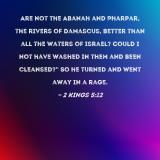 Are not the Abanah and Pharpar, the rivers of Damascus, better than all the waters of Israel? Could I not have washed in them and been cleansed?" So he turned and went away in a rage.