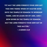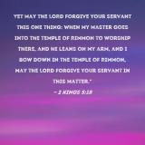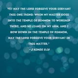 Pictures and Artwork Yet may the LORD forgive your servant this one thing: When my master goes into the temple of Rimmon to worship there, and he leans on my arm, and I bow down in the temple of Rimmon, may the LORD forgive your servant in this matter." |