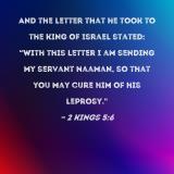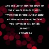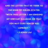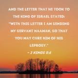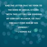 And the letter that he took to the king of Israel stated: "With this letter I am sending my servant Naaman, so that you may cure him of his leprosy."