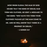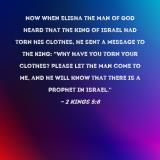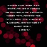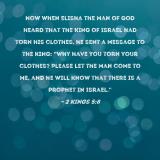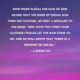 Pictures and Artwork Now when Elisha the man of God heard that the king of Israel had torn his clothes, he sent a message to the king: "Why have you torn your clothes? Please let the man come to me, and he will know that there is a prophet in Israel." |