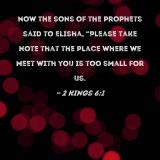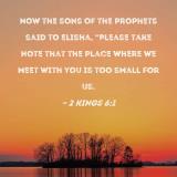Now the sons of the prophets said to Elisha, "Please take note that the place where we meet with you is too small for us.
