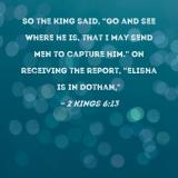 So the king said, "Go and see where he is, that I may send men to capture him." On receiving the report, "Elisha is in Dothan,"