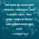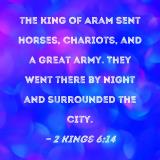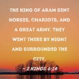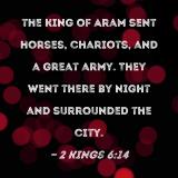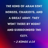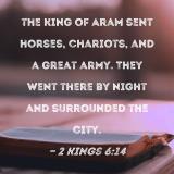 the king of Aram sent horses, chariots, and a great army. They went there by night and surrounded the city.