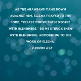 As the Arameans came down against him, Elisha prayed to the LORD, "Please strike these people with blindness." So He struck them with blindness, according to the word of Elisha.