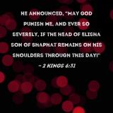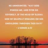He announced, "May God punish me, and ever so severely, if the head of Elisha son of Shaphat remains on his shoulders through this day!"
