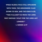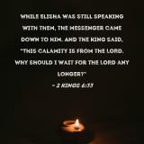 While Elisha was still speaking with them, the messenger came down to him. And the king said, "This calamity is from the LORD. Why should I wait for the LORD any longer?"