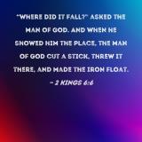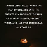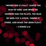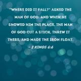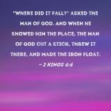 "Where did it fall?" asked the man of God. And when he showed him the place, the man of God cut a stick, threw it there, and made the iron float.