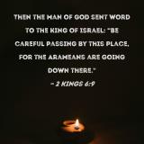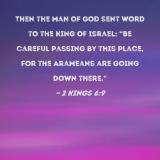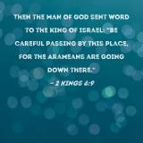 Then the man of God sent word to the king of Israel: "Be careful passing by this place, for the Arameans are going down there."