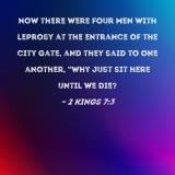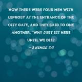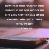 Now there were four men with leprosy at the entrance of the city gate, and they said to one another, "Why just sit here until we die?