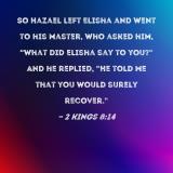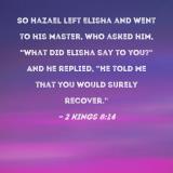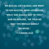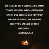 So Hazael left Elisha and went to his master, who asked him, "What did Elisha say to you?" And he replied, "He told me that you would surely recover."